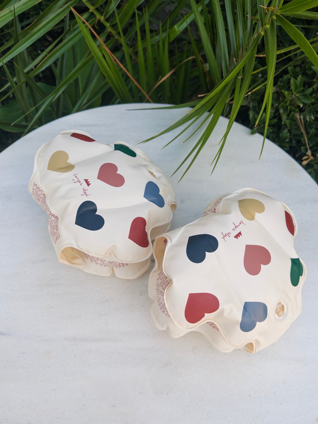 The sweetest inflatable swim wings we've ever seen! These floaties by Konges Sløjd are made from durable PVC and covered in colourful hearts. To match back with any swimsuit, they'll give your little one confidence in the water. Make sure to read all warning instructions printed on the wings.