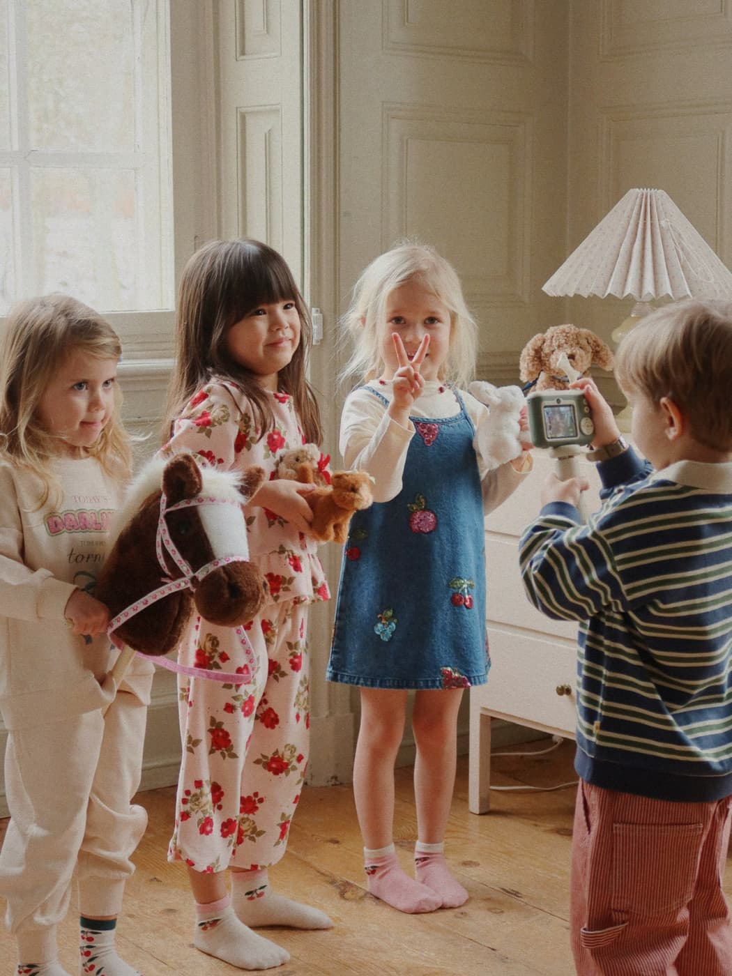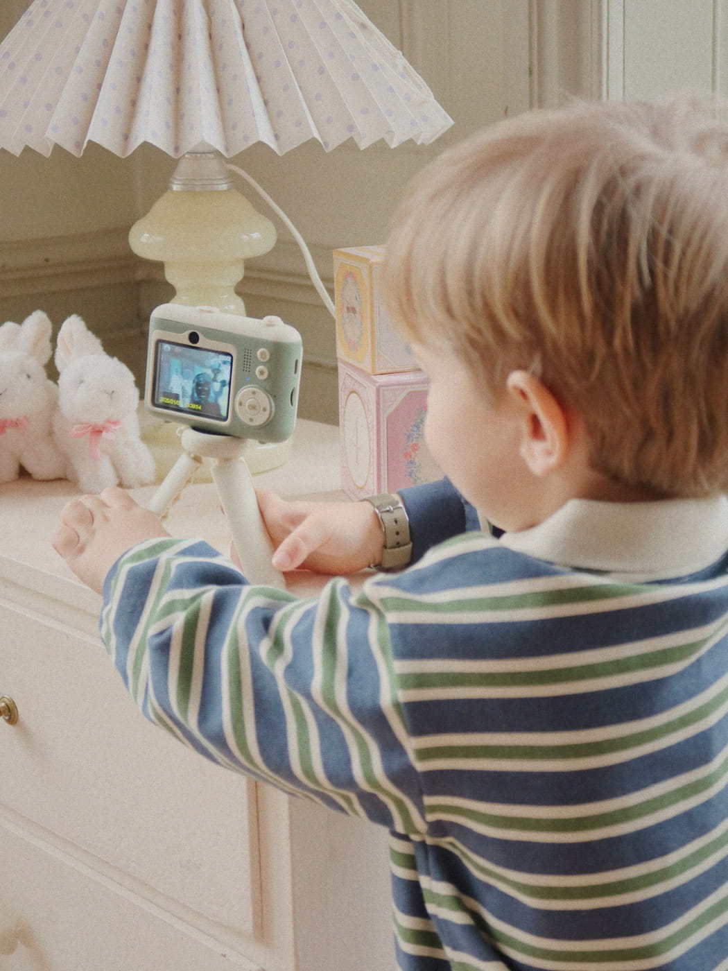 How adorable is this soft little camera for your budding photographer. Introduce your child to the amazing world of digital photography with a multifunctional camera with high-definition preview screen. This brand new product by Konges Slojd features a fun selfie function, video preset, and three pre-installed games, as well as a practical tabletop tripod that makes it easy to take selfies or record performances.